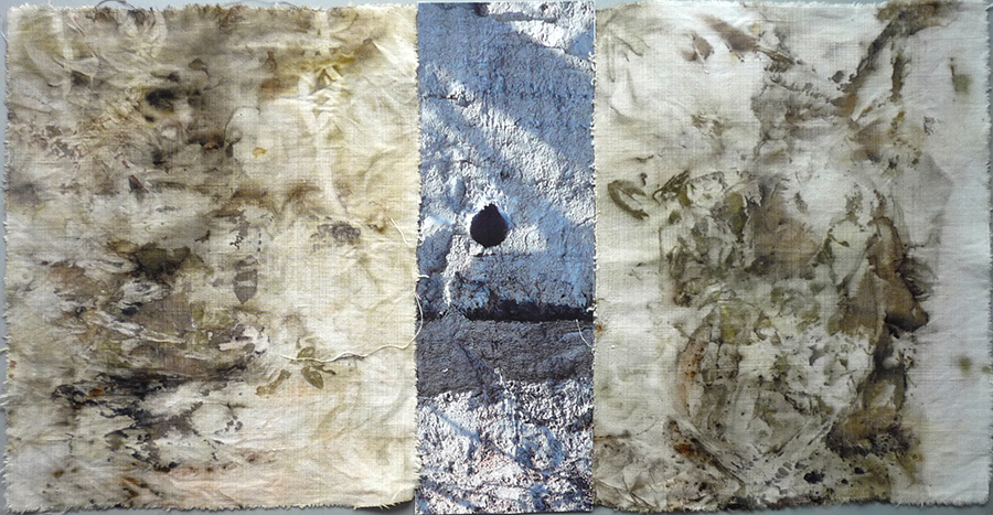 Le secret de France Bergeron, associe des impressions végétales sur lin à une impression numérique de mon cru.