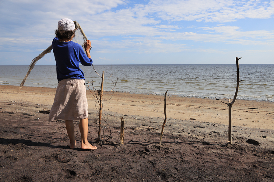 France Bergeron à l’oeuvre sur la plage du Parc-Nature